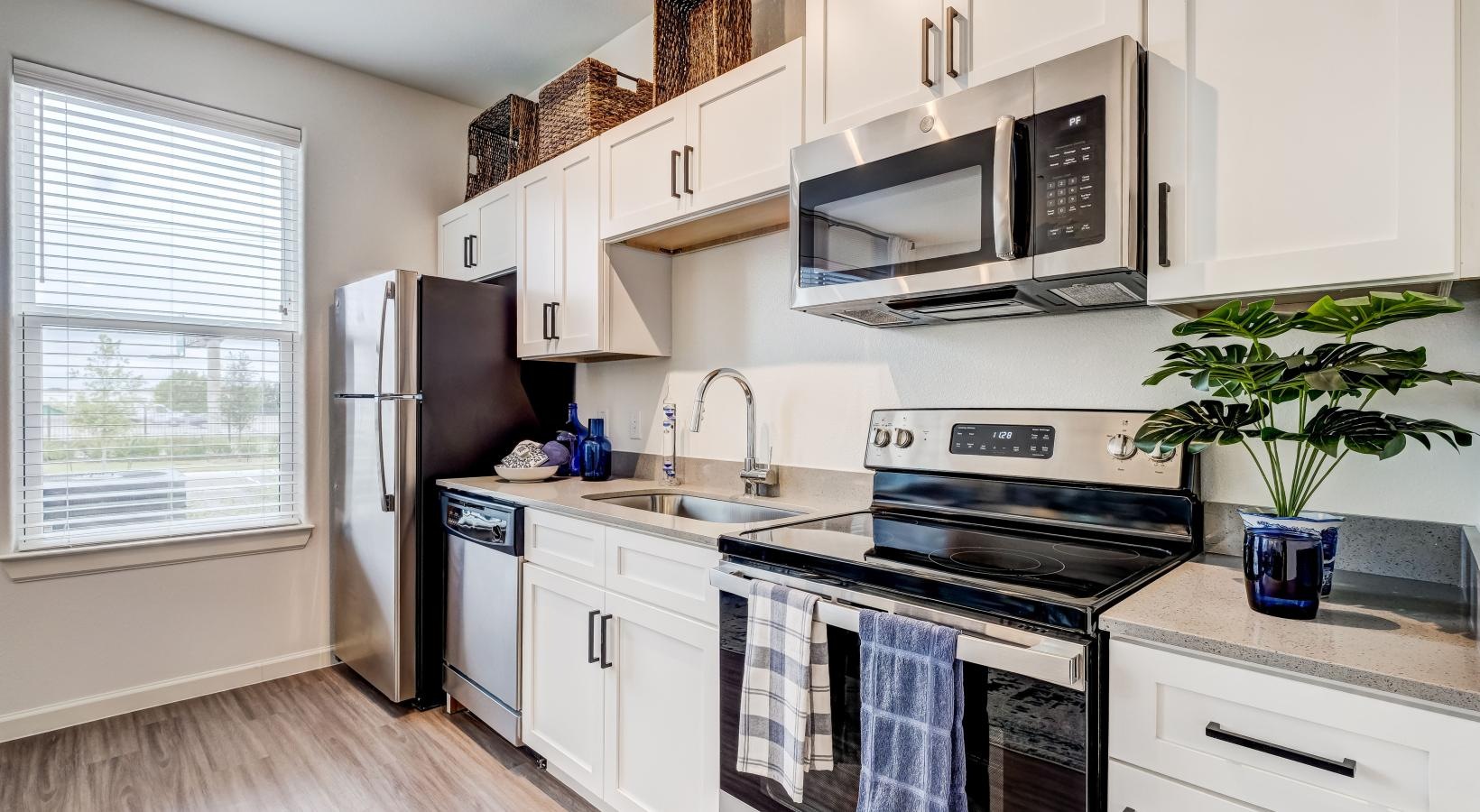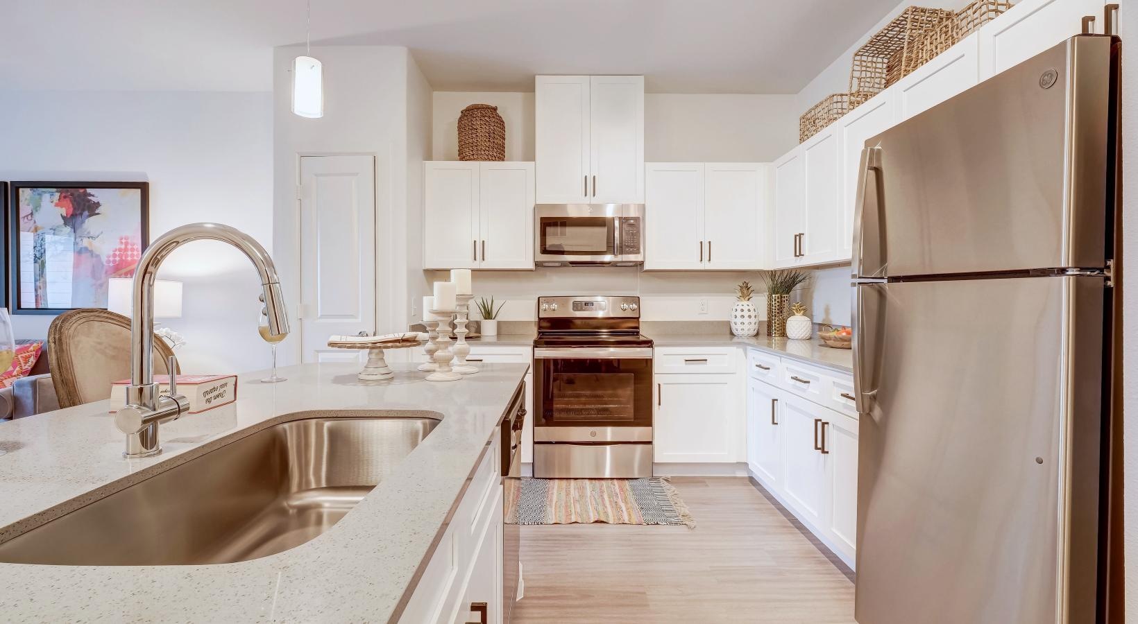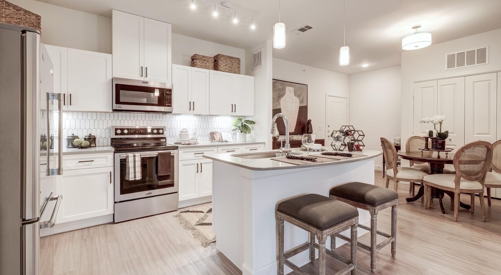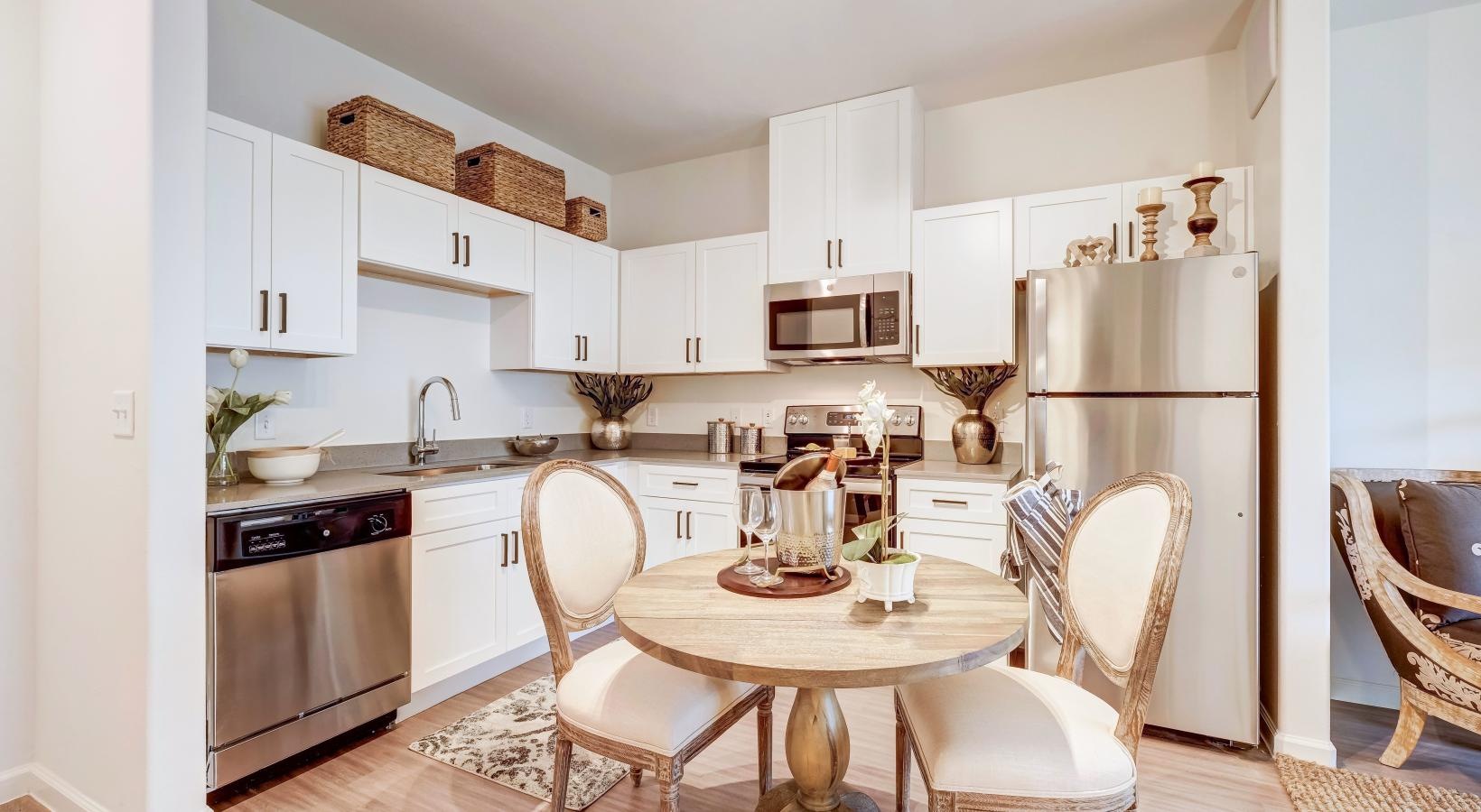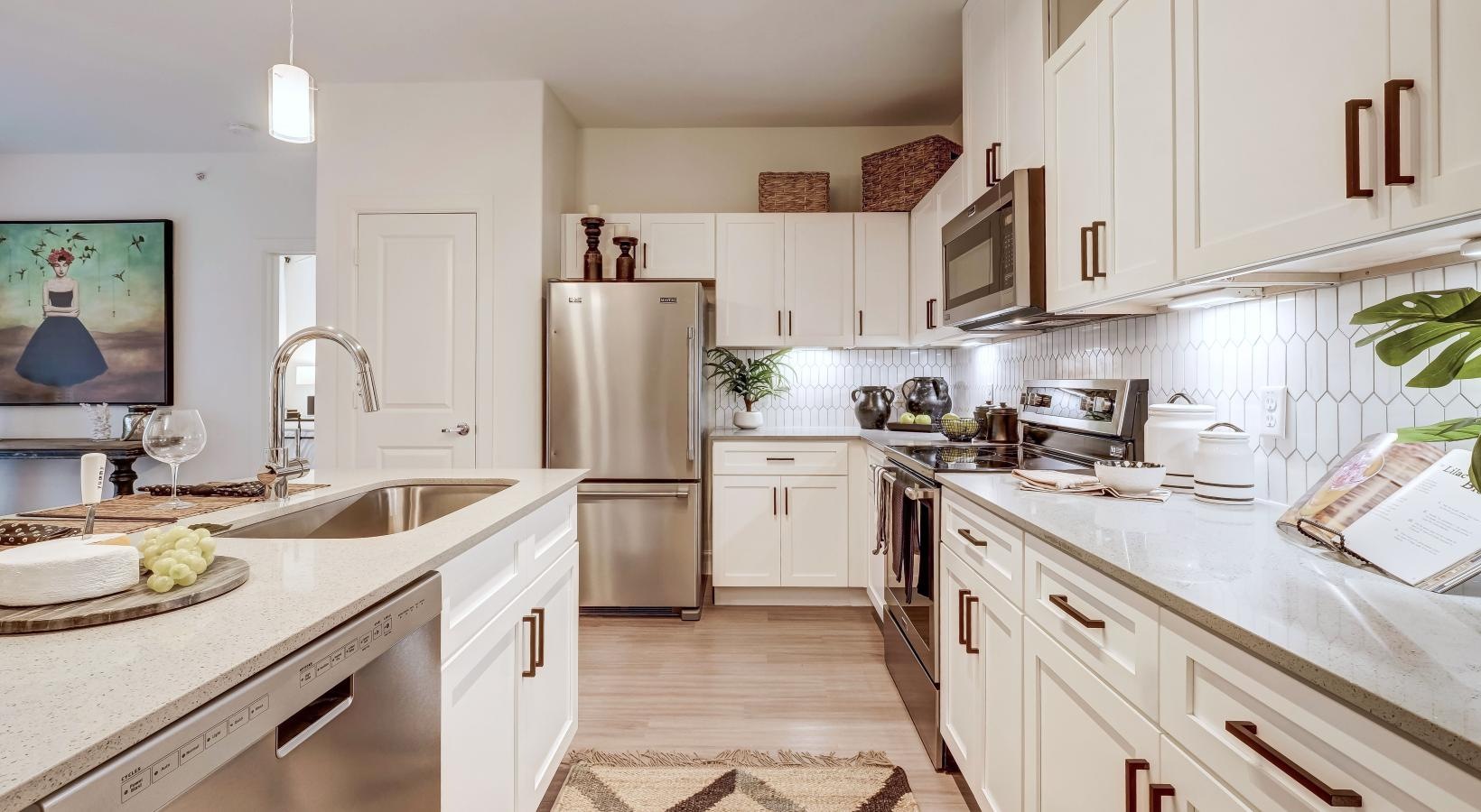 • a kitchen with white cabinets