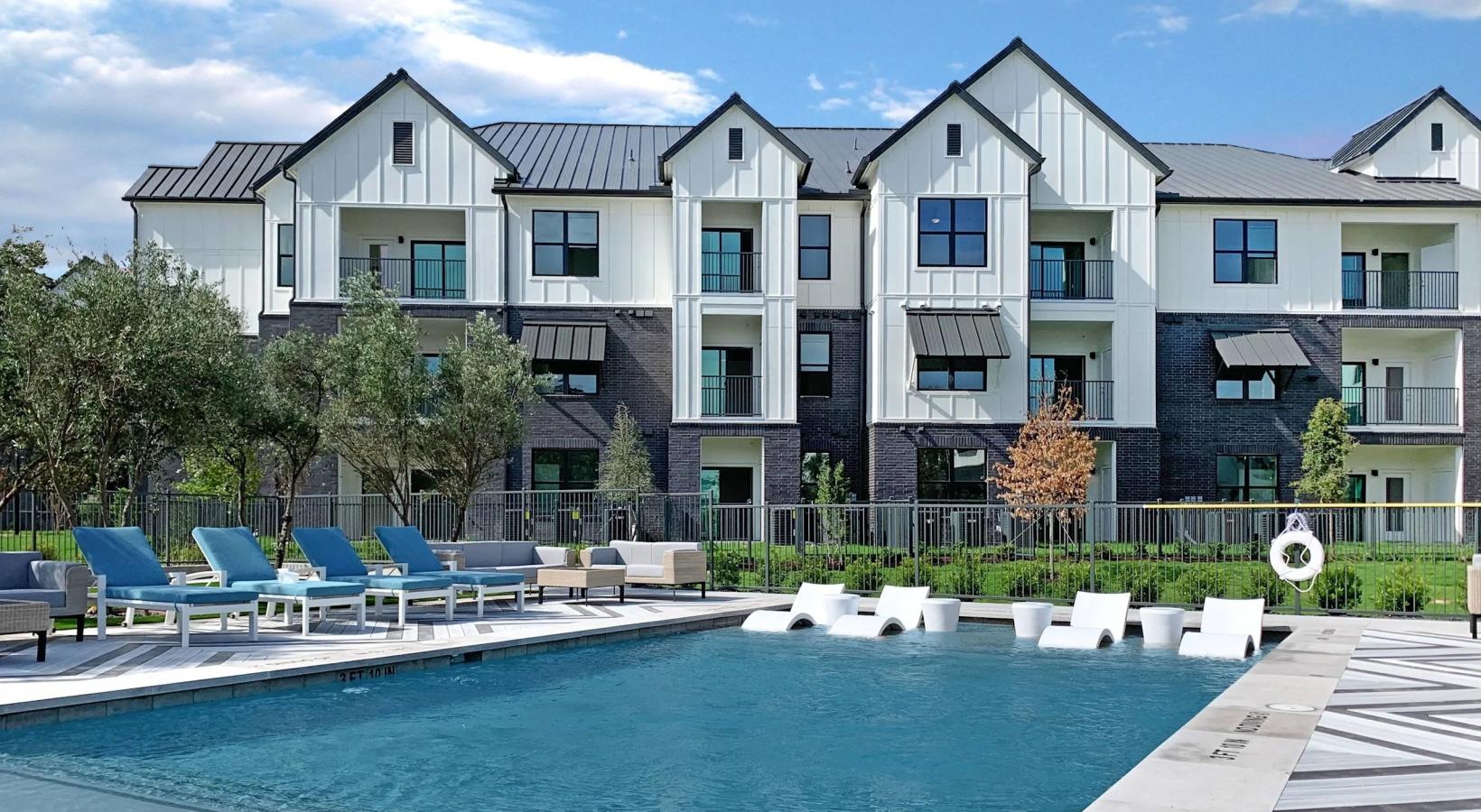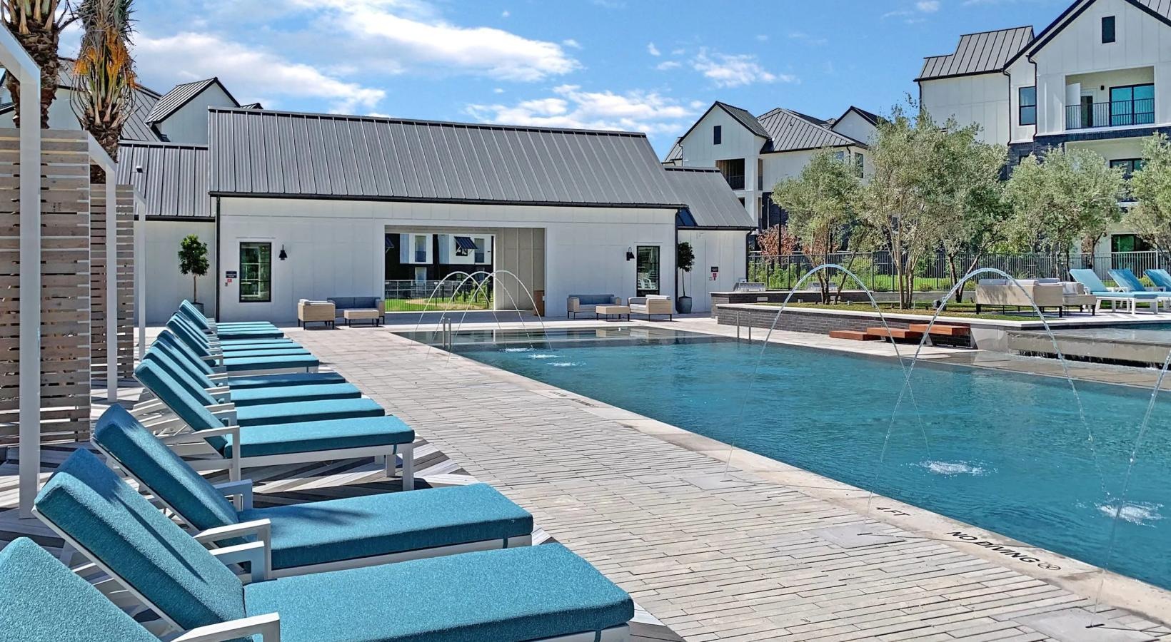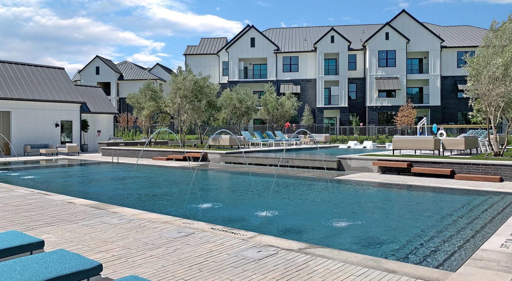 • a swimming pool in front of a building