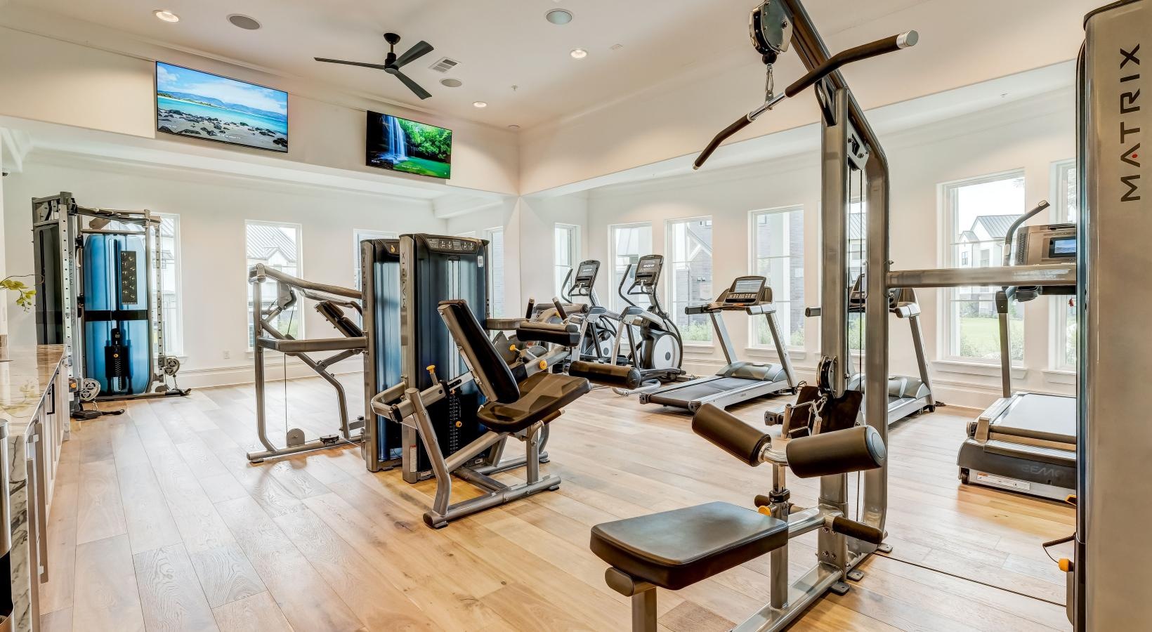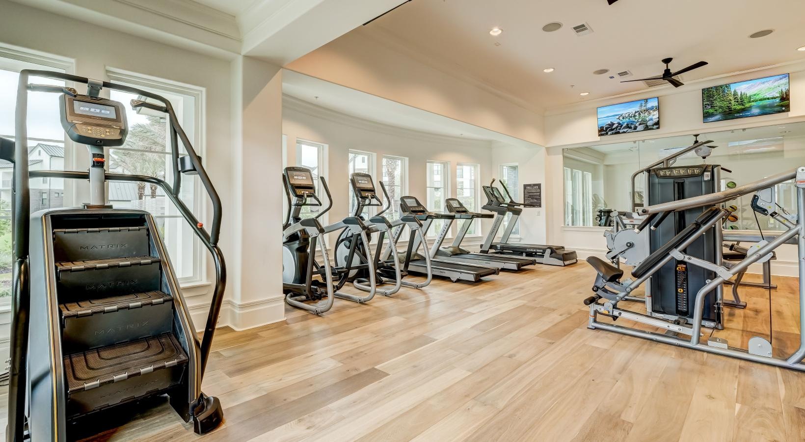 • a gym with exercise equipment