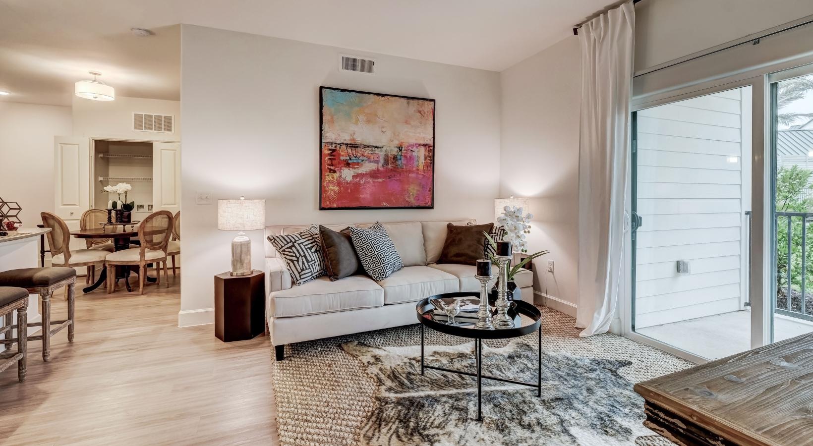 • a living room with a couch and coffee table