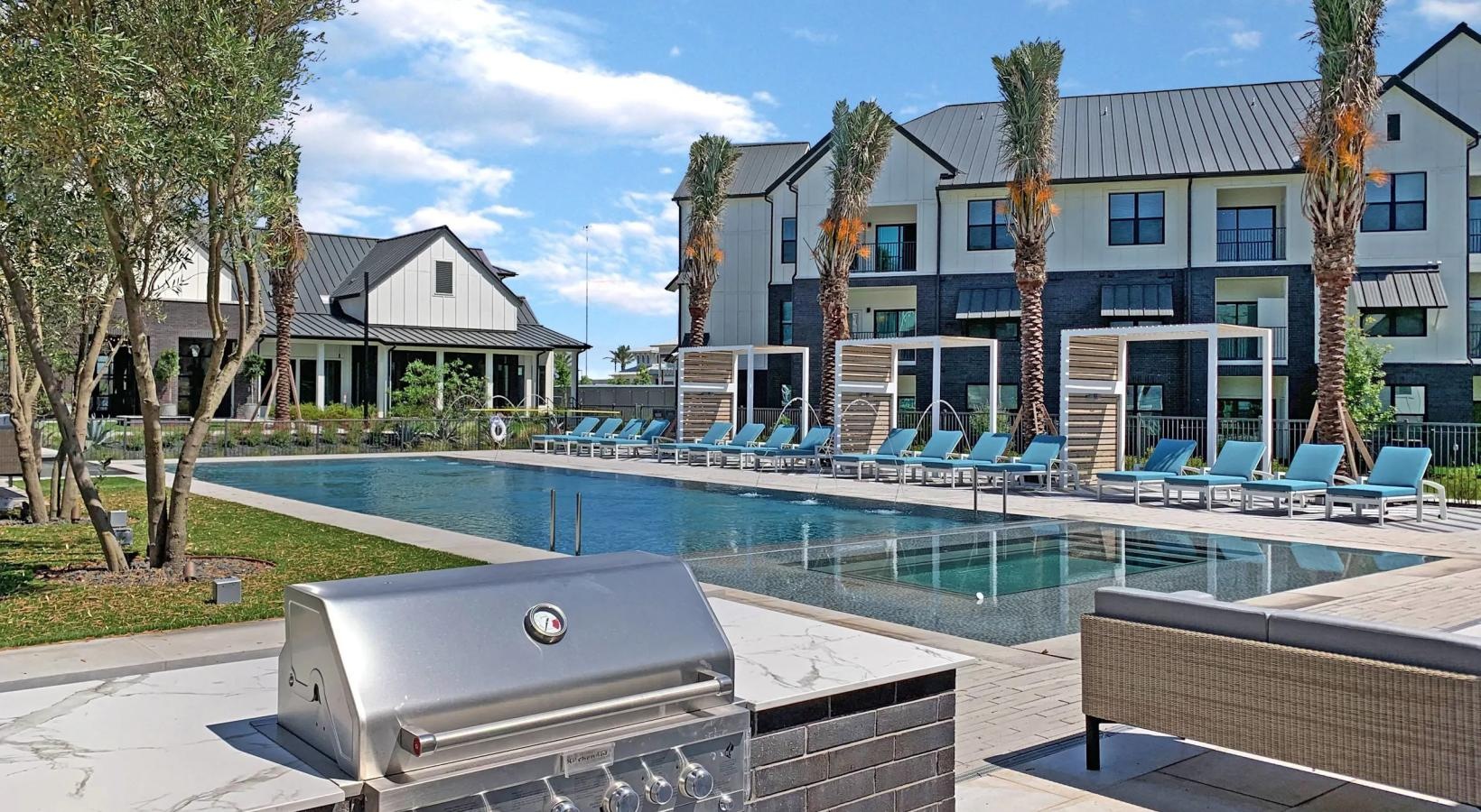 • a pool with a grill
