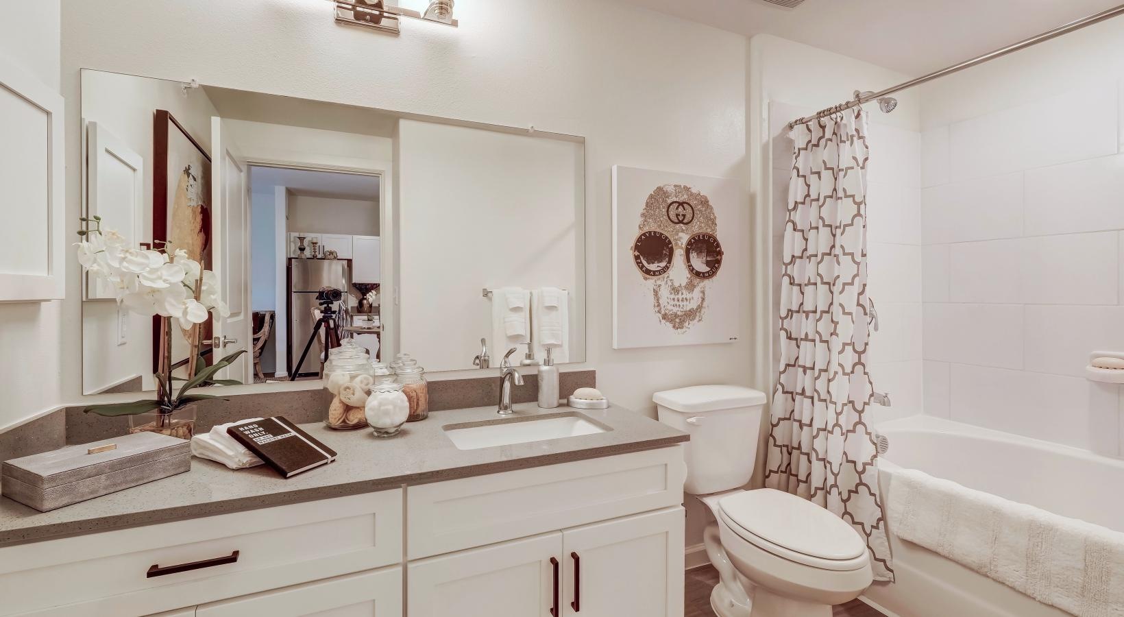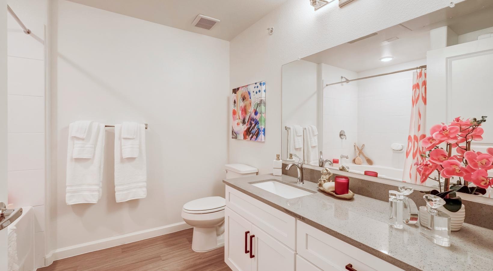 • a bathroom with a large mirror