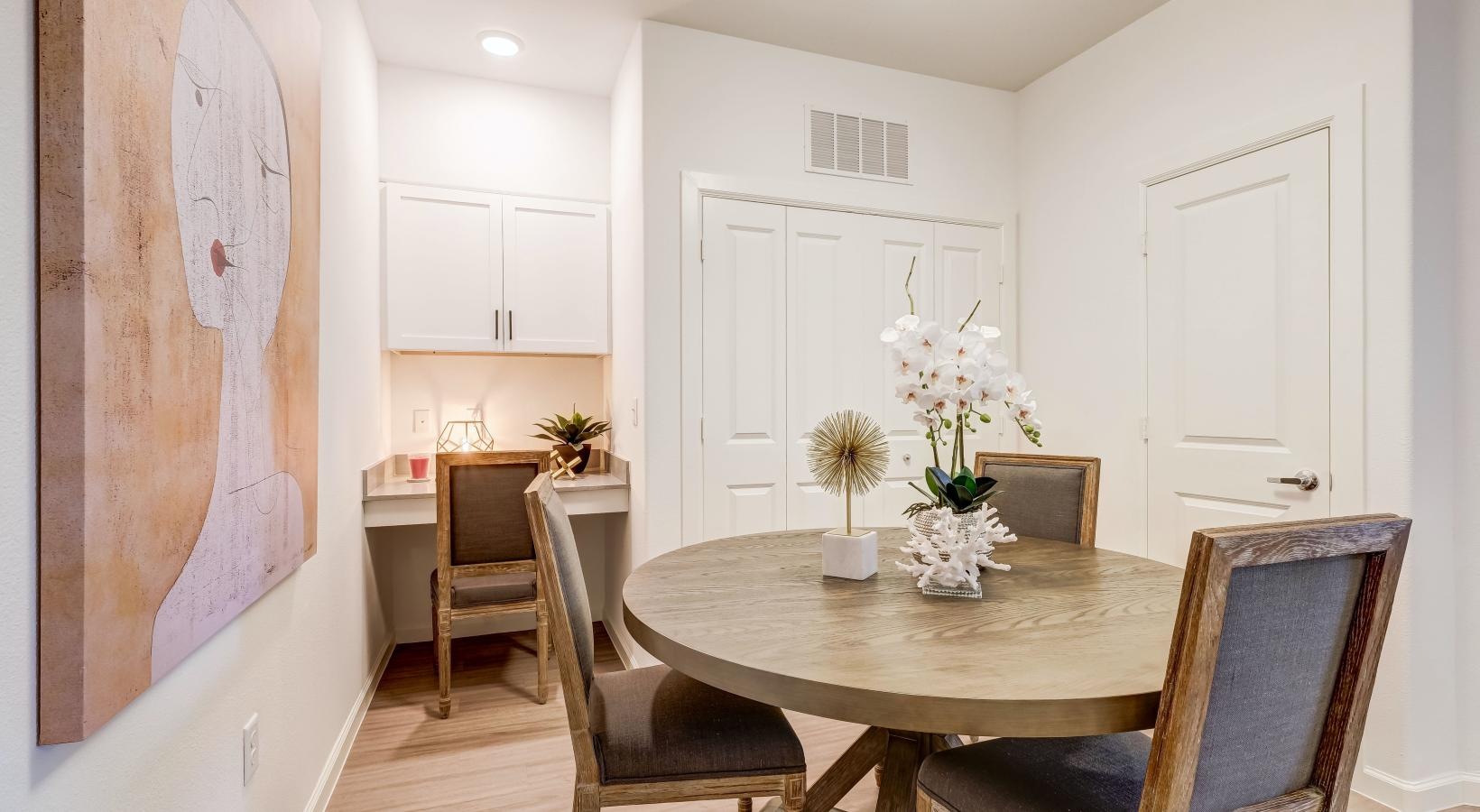 • a dining room table with chairs